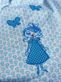 Fräulein Letterschming schmückt jetzt Theresas neues Sommerkleid. Auch ohne Stickmaschine!